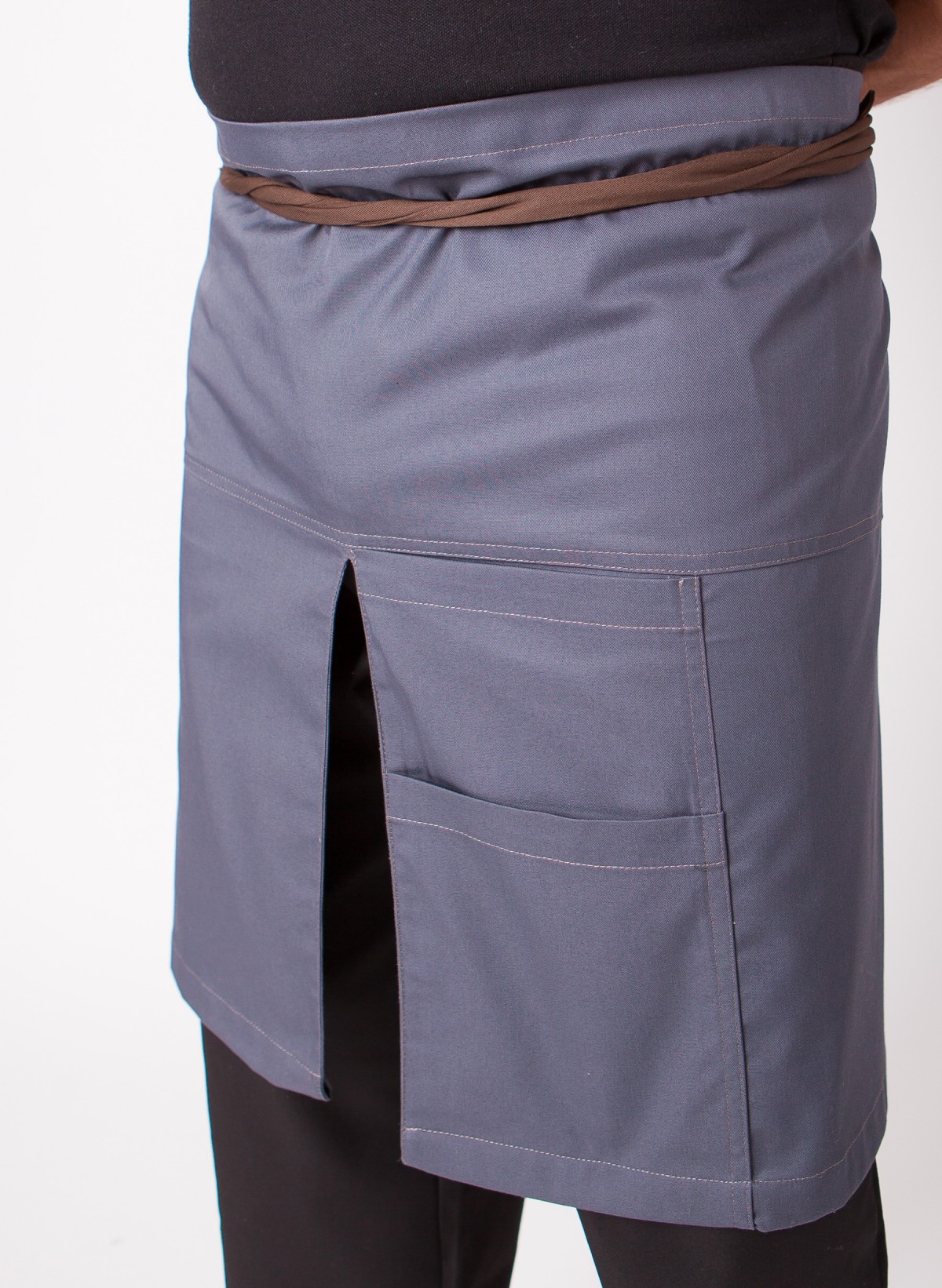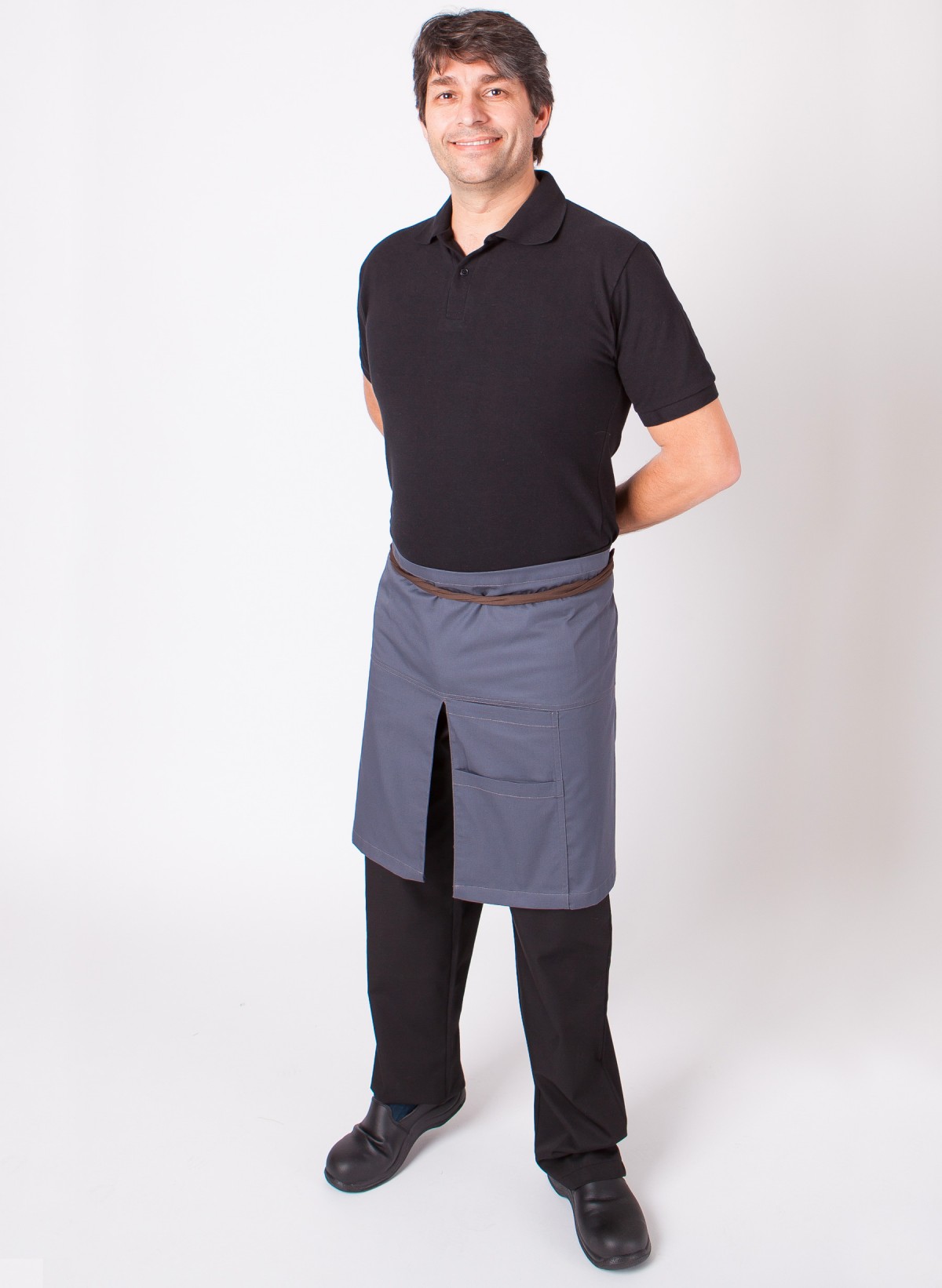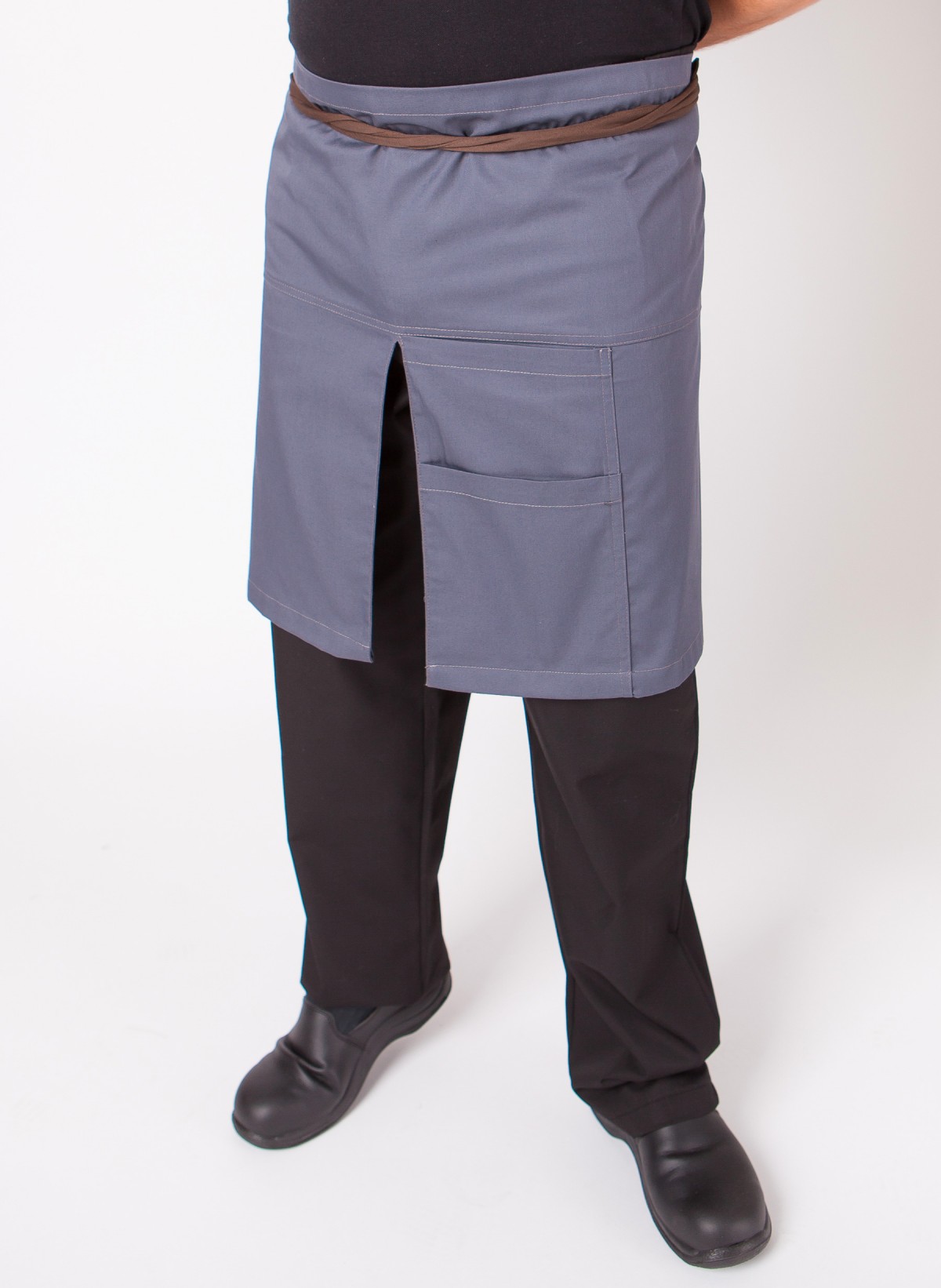 Avental Cintura desenvolvido em tecido 65% Poliester 35% Algodão - Sarja com dois bolsos e racha, ideal para atendimento em cafés e/ou esplanadas bastante movimentadas.