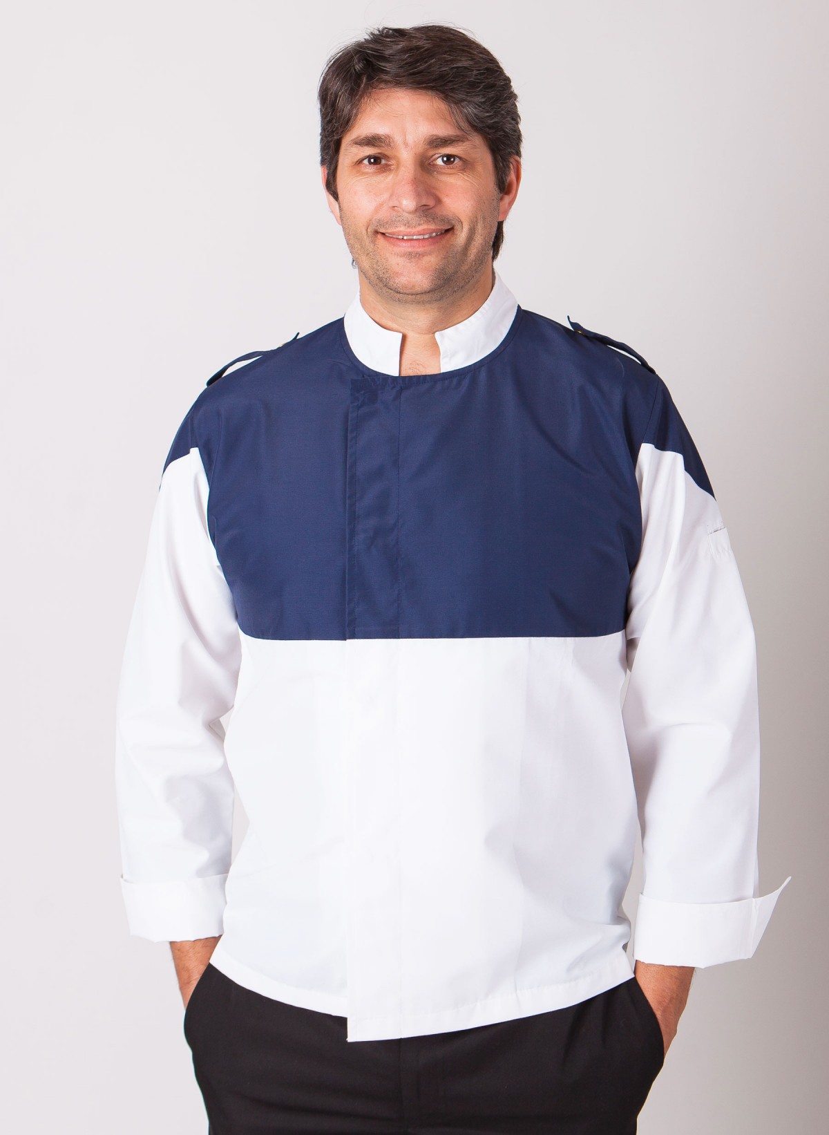 Jaleca Baleares desenvolvida em tecido 65% Poliester 35% Algodão - Sarja - Colecção Mar