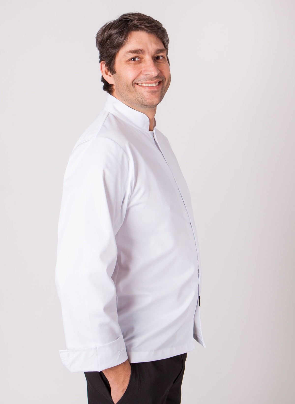 Jaleca modelo Sammy em tecido sarja (65% poliester 35% algodão) com uma gramagem de 200 gramas