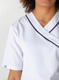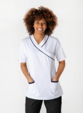 Túnica feminina desenvolvida em tecido MF anti-nódoas (67% Poliéster e 33% Algodão) com uma gramagem de 233 gramas.